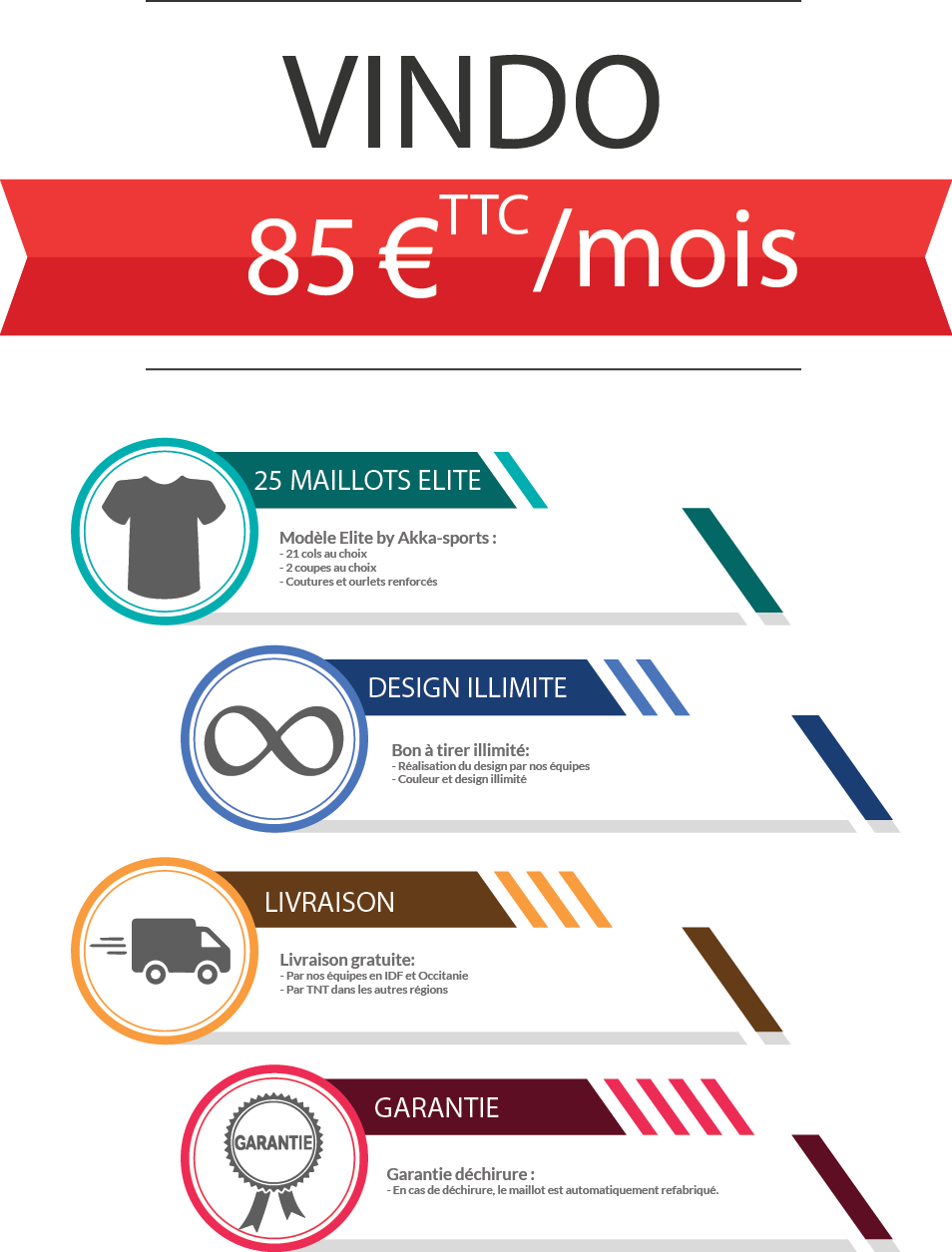 Ainsi, à la manière d’un abonnement téléphonique ou à une chaîne sportive, vous ne voyez plus passer votre investissement et vous pouvez renouveler votre « parc » maillots chaque année !